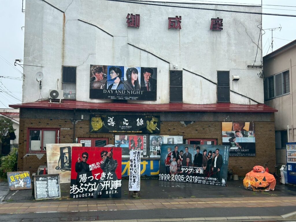 秋田県大館市御成町は、あの“忠犬ハチ公”の生まれ故郷として知られており、大館駅周辺にも、忠犬ハチ公像や、秋田犬にまつわる展示をする施設も存在します。そんな、駅前を少し歩くと、様々な映画のポスターが窓一面に貼られ、何より、圧倒的な存在感を放つ、手書きの絵看板が目を惹く映画館「御成座」が建っています。東北地方で唯一となる一戸建ての映画館で、昔ながらのレトロで温かい雰囲気が人気、地元の人々や、映画ファンに支えられながら文化的な拠点として親しまれています。