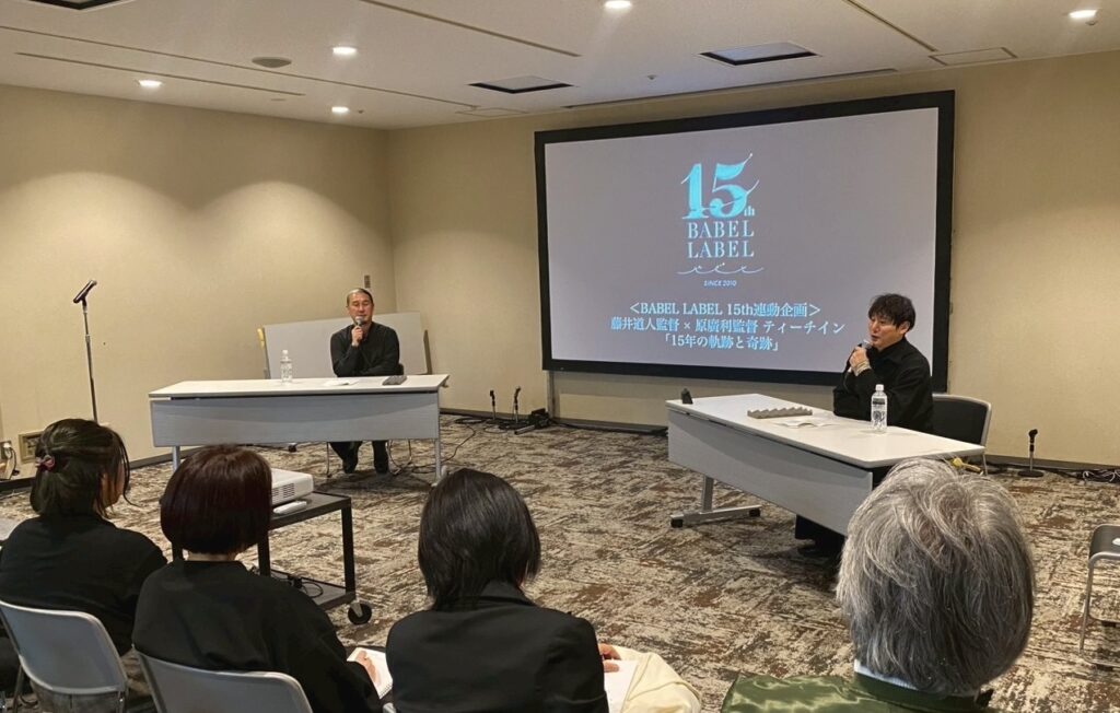 BABEL LABEL設立の経緯を語る中で、会社員であった原監督が、藤井監督の自主映画『埃』を見た瞬間、「本当に会社員をやってる場合じゃない。本気で監督を目指すのであれば、今辞めないとダメだ」と、会社を辞める決意をした経緯を明かし、『埃』という作品は藤井監督の原型がある作品なので是非観て欲しいと呼びかけました。さらに、自主制作時代から商業ドラマ制作に移行する中で、藤井監督は制作会社としての苦悩を吐露。ビジネス面での厳しい現実に直面したことを告白しました。その結果、「制作会社だけじゃなくて、自分たちで企画から作り、自分たちの映画をちゃんと作っていこう」という、現在の「コンテンツスタジオ」としての体制へと移行したと、ターニングポイントを語りました。質疑応答コーナーでの演出論に関する質問に対しては、藤井監督は「僕にとっては、その人たちをキャスティングしたからには、その人たちが一番最大化できるやり方を探すのが自分の仕事だなと思っている」と、俳優を型にはめるのではなく、個性を引き出すことを最優先していると伝えました。原監督は、藤井監督の演出スタイルについて、自主映画時代のエピソードを交えて言及。「藤井さんは俳優部と話すのがすごく上手いんですよ。コソコソ喋ってて、誰にも聞かれないように喋っていて」と、俳優が抱える不安を現場に入る前に解消するための藤井監督のコミュニケーションの工夫を明かし、自身もその手法を学んでいると語りました。